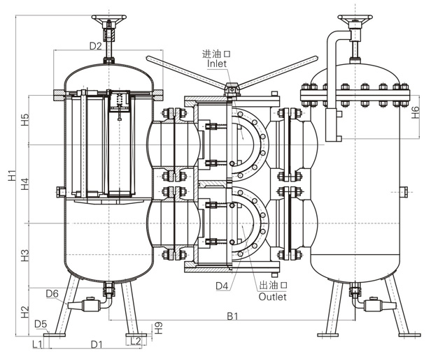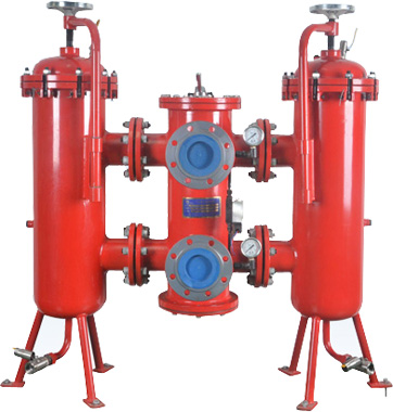 它的工作特點是當(dāng)一只過濾器濾芯堵塞需要更換時,不需要停止主機工作,只要打開壓力平衡并轉(zhuǎn)動換向閥,另一只過濾器即可參加工作,然后更換已堵塞的濾芯。