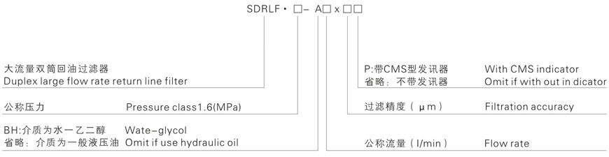 | 注:*為過濾精度,若使用介質(zhì)為水一乙二醇,帶發(fā)訊器。則過濾器型號為SDRLF·BH-A2600X*P,濾芯型號為SFX·BH-130X*。 | |||||||||||