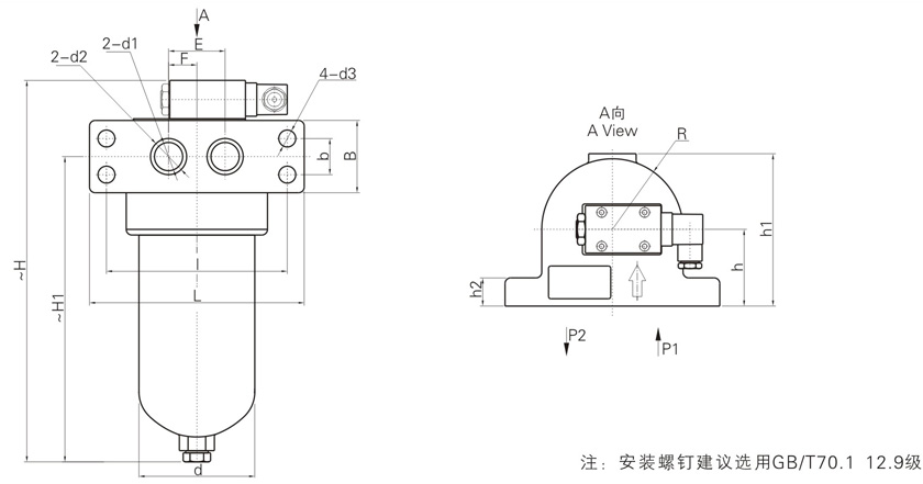 該過(guò)濾器設(shè)有壓差發(fā)訊裝置,當(dāng)濾芯污染堵塞到進(jìn)出油口壓差為0.35Mpa時(shí),即發(fā)出開關(guān)信號(hào),此時(shí)更換濾芯,以達(dá)到保護(hù)系統(tǒng)安全的目的。