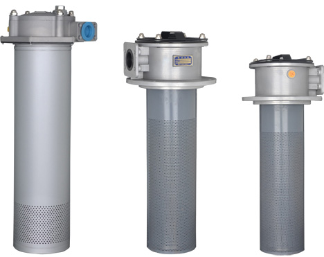 這種過濾器設(shè)有濾芯污染堵塞發(fā)訊器和油路旁通閥,當(dāng)回油壓力達(dá)到0.35MPa時(shí),發(fā)訊器發(fā)出開關(guān)信號(hào)或報(bào)警,還可直接從發(fā)訊器的表盤上讀出回油壓力值,以提示操作人員及時(shí)更換濾芯,保證系統(tǒng)油液的清潔度。更換濾芯只需旋開過濾器端蓋即可。當(dāng)回油壓力上升至0.4MPa時(shí),過濾器內(nèi)的旁通閥便自動(dòng)卸荷,以避免回油壓力過高造成整個(gè)系統(tǒng)工作性能不良。