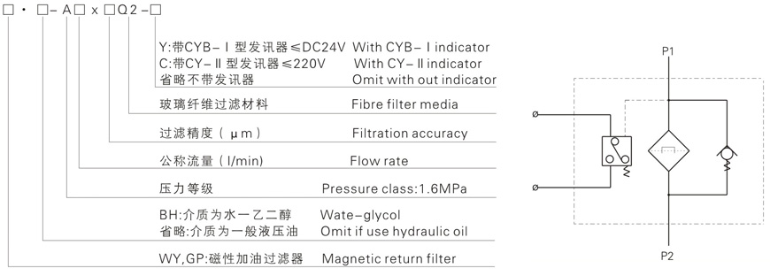 注:*為過濾精度,若使用介質(zhì)為一乙二醇,帶CYB-I發(fā)訊器,則過濾器型號(hào)為:GP·BH-A400x*Q2Y;WY·BH-A400x*Q2Y;濾芯型號(hào)為:GP·BH400x*Q2;WY·BH-A400x*Q2;